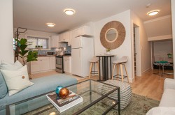 Welcome to your stylish & inviting FURNISHED North Shore retreat. This well-appointed 2 bdrm suite offers a warm, inviting space for both comfort & function with no detail overlooked. Enjoy reliable Wi-Fi, wide-screen TV, & top-quality Sealy mattresses in each bedroom for restful sleeps. Start your day w/ a Keurig coffee & enjoy the ease of Evo car share & bus routes just outside. Ideally located, you’re walking distance to the seawall, great cafés, restaurants & the vibrant Shipyard district. Whether you're in town for work or relaxation, this suite provides a peaceful home base w/quick access to all the North Shore has to offer. Rent includes heat, hot water, electricity, internet, cable, plus once-a-month cleaning & linen change for added ease. Shared laundry. street parking available.