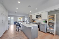 Beautifully designed modern and RARELY available 3-bed, 3-bath townhome with the potential for a 4th bedroom. Features a bright open floor plan, stylish kitchen with a BIG island, stainless steel appliances, generous storage/pantry, bay-style dining area and a lovely balcony. Upstairs offers a spacious primary bedroom with walk-in closet and 4-piece ensuite, plus two additional bedrooms and convenient laundry. Steps to Gates and Elk Parks, shopping, Safeway, Farm Market, cafés, restaurants, the new Community Centre, transit and West Coast Express. School catchments include Central Elementary, Pitt River Middle and Riverside Secondary. A perfect blend of comfort, convenience and a family-friendly community. Three parking spaces and EV garage rough-in. Feels like a house.