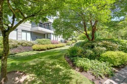 This exceptional 2-bedroom + den/3 bedroom, 2-bathroom corner suite in The Crescendo - a quality concrete building by Bosa - offers the ideal downsize opportunity in the heart of Newport Village. Situated on the first residential level (not ground floor), this bright and spacious home features over 1,300 sq ft of thoughtfully designed living space, a cozy electric fireplace, and expansive windows throughout. The kitchen is equipped with granite countertops, a smooth-top stove, built-in microwave, and a generous full-size pantry. The open-concept dining and living areas flow seamlessly to a large, private corner deck with views of the lush garden accessible from both the living room and oversized master bedroom. 2 side by side parking stalls.