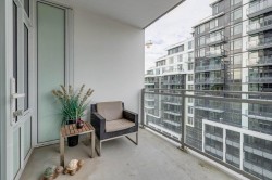 Beautiful new 1 bedroom diplay unit at Torino North. Airy and spacious throughout with extra large chef's kitchen & full-size appliances, high ceilings, wide-plank laminate flooring, and heat pump cooling/heating. Convenient location with services, groceries, restaurant & the Capstan Canada Line Station all a couple minutes walk away. Ready to move in.