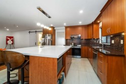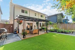 Nestled in Steveston North, this two-storey home received a complete 2022 renovation, including a new heat pump, hot water tank, 200 A electrical service and full insulation. Solid hardwood flows through the main floor into an open-concept kitchen with porcelain tile, custom quartz island and integrated stainless-steel appliances. A bonus games room can serve as a fourth bedroom. The main bathroom and all secondary bathrooms, plus the laundry room, have been fully refreshed, and the staircase has been tastefully refinished.Outside, entertain or unwind on the newly built deck and sun canopy overlooking a completely renovated, private fenced backyard. Just steps from top-ranked James McKinney Elementary and Steveston-London Secondary, this home delivers thoughtful design, modern comforts!