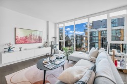 Enjoy PENTHOUSE & WATERFRONT living in this luxury condo steps from Marina and Capstan SkyTrain! LIKE-NEW condition 2BED+FLEX boasts 9" high ceilings, expansive windows, and gorgeous views of Fraser River and North Shore Mountains. Functional layout features A/C, spacious bedrooms, spa-like bathrooms, flex, engineered hardwood floors. Gourmet kitchen equipped with Miele S/S full-size appliances, Quartz countertops, and a large island with ample storage. Balcony enhanced with deck tiles. Added benefit of low utility costs and under 2-5-10 warranty. World-class amenities include pool, hot tub, sauna, steam, gym, party, study, games, and music rooms, BBQ area, playground, and more. Effortless lifestyle with transit, malls, groceries, restaurants, services, and entertainment all within reach!