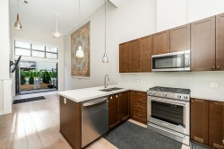 Welcome to "The Pier" in Steveston’s rarely available London Landing! This east-facing ground-level 1 bed + den unit features soaring 15’ ceilings and floor-to-ceiling windows that flood the space with natural light. With just under 750 sq ft, it offers 2 full bathrooms, a beautiful kitchen, and a versatile den that can be used as a 2nd bedroom or office. Enjoy seamless indoor-outdoor living with large bi-fold doors leading to your spacious garden patio, complete with a gas hookup. Steps from scenic dyke trails and a brand new waterfront park. Includes 1 parking and 1 locker. Rentals and pets allowed. A truly special home—don’t miss out!