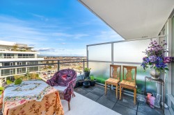 Welcome to the luxurious Concord Gardens South Estates in the heart of Richmond. This spacious 1,107 sq.ft corner unit features a functional open layout with 3 well-sized Bedrooms, thoughtfully positioned apart from each other for maximum privacy, Bosch SS appliances, floor-to-ceiling windows, and AC for heating and cooling. 1 locker and parking included. One of its most remarkable highlights is the expansive 449 sq. ft. balcony, offering breathtaking 90-degree views of the mountains and the entire city skyline. Diamond Clubhouse provides resort-style amenities, including a gym, indoor pool, sauna, steam room & hot tub, badminton court, and much more. Convenient lifestyle, only a few minutes distance to the new Capstan Skytrain Station, T& T Supermarket,Canadian Tires, Costco,etc.Must See!