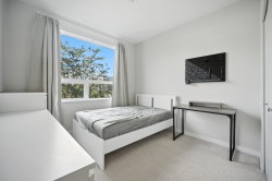 Modern 2-bedroom corner unit at Berkeley House in central Richmond. Bright and air-conditioned, with 9’ ceilings and a spacious layout. Gourmet kitchen with premium appliances, stone counters, and premium backsplash. Large primary suite with walk-in closet and double-sink ensuite. Enjoy over 5,000 sq.ft. of amenities including gym, lounge, and co-working space. Walking distance to Canada Line, Walmart, restaurants, plazas, Tomsett Elementary, and MacNeill Secondary. A perfect mix of comfort and convenience.