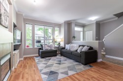 Prestigious RIVERWIND Town home in the Heart of Steveston! This refreshed bright and spacious 3 bedroom, den, 2.5 bathroom home features a stunning open layout with 9' ceilings, gourmet kitchen with granite counters, stainless steel appliances, maple cabinets, breakfast bar and a cozy nook/family area. Enjoy the warmth of a gas fireplace in the living room and a large Master with walk-in closet and spa-style en-suite with deep soaker tub and stand-up shower. Bonus flex room off double car garage-perfect for an office or storage. Recently installed heat pump for year round comfort. Close to Dyke Trails, Britannia Shipyard Museum, shopping, transit, and Steveston Village. School catchments: Homma Elementary & McMath Secondary. Don't miss out!
