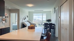 Experience Exquisite Living in Penthouse 518. Indulge in unparalleled luxury in this beautifully appointed 2-bedroom and den penthouse, featuring soaring high ceilings and sweeping city views. With 980 sq. ft. of open, elegant living space, the versatile den offers endless possibilities-ideal as a home office, third bedroom, playroom, or your dream walk-in closet. The one-of-a-kind oversized gourmet kitchen is a chef's dream, complete with high-end appliances, a gas range, and an expansive island perfect for cooking and entertaining. Residents of Berkeley House enjoy exceptional amenities, including a stylish clubhouse, lounge, fitness center, and a children's playground. Perfectly located near premier shopping, dining, and transit. Your dream south-facing home has finally arrived!