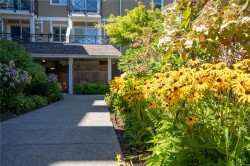 Welcome to Viewmont Heights in Royal Oak Village! This 2 bed/2 bth patio-style style ground floor unit is a 55+ complex (2008) located in the popular area of Saanich. Near Broadmead village & close to all transportation yet tucked away from traffic with shops, recreation, medical services, groceries & amazing restaurants only a short walk away. This well-kept, UPDATED home is in great condition with heated tile flrs and has an open kitchen & living rm, making it a very spacious floorpan. Upgraded walk in style tub and large easy-access shower. Handy in-suite laundry, secure underground parking, separate storage & a well-organized strata. Perfect walkable, private location and community to call home!