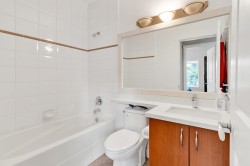 2 bedrooms & 2 baths townhome located in Terrane, walking distance to Scottsdale Shopping Centre with Save-on-Foods, Walmart, many options of restaurants and recreation places. Walking distance to schools and public transportation. You will love this warm and spacious 1st floor unit with new laminate floors. The kitchen area has been refinished with quartz counters and cabinets. Large utility room accommodates more storage space. Street parking access to the peaceful front yard.