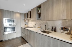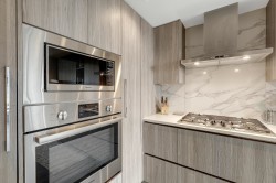 This stylish 2-bed, 2-bath home is still under the 2-5-10 warranty and loaded with upgrades: bigger brand-new Samsung washer/dryer, custom-designed kitchen storage with bench, entire unit upgraded with voice-controlled smart dimmable, color-changing lights, new chandelier in the Living Room, and a stylish wine/coffee bar. Bright open layout with a modern kitchen plus a spacious 93 sq.ft. patio boasting 270° city views – enjoy sunsets, sparkling skyline nights, sunrises, and mountain views. Resort-style amenities include concierge, fitness centre, indoor pool, hot tub, sauna, party room, business centre & even a badminton court. Steps to SkyTrain, shopping, and SFU campus. Modern, upgraded, move-in-ready & located in the Health and Technology District of Surrey. Open House Nov 1st 2 - 4pm.