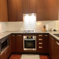 With 1216 square feet spread over 2 stories, this Yaletown furnished townhouse rental at The Donovan offers contemporary living with a sophisticated style and sweeping 14 foot ceilings. You will feel right at home thanks to the modern and neutral furnishings, perfect for anyone's style. The foyer as you enter the townhome is spacious with plenty of closet space. The living area houses a plush leather sectional, cozy area rug, and coffee table. A chic dining area has a 5 person glass dining table illuminated by a chandelier, and can be extended to seat 8 when entertaining. With granite counter tops, modern stainless steel appliances, a gas stove, and pull out kitchen faucet, you will love cooking in your new home.