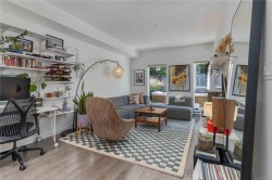 Welcome to this bright ground-floor condo at the Horizon in the Railyards, offering a rare 425sqft private patio! This award-winning contemporary building is set in a vibrant waterfront community that blends natural beauty with urban convenience. The fully rentable and pet-friendly suite features a modern kitchen with stainless steel appliances and quartz countertops, opening into a sunlit living and dining space with southwest-facing windows. Everyday comforts include in-unit laundry, a designated parking stall, separate storage, bike storage, and paddle board/kayak storage in building. Residents also enjoy access to a rooftop patio with sweeping city and waterway views. Just steps outside your door you can walk, kayak, or cycle downtown in minutes, or explore the parks and shops right across the street. With the Galloping Goose Trail, Selkirk Trestle, and Gorge waterway at your doorstep, this home is perfect for those seeking both an active lifestyle and a connected urban experience.