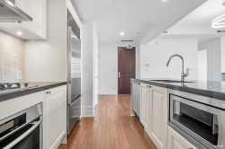 Discover this beautiful & elegant 2 bedroom, 2 bathroom home at Waters Edge. This coveted enclave welcomes you with a sense of luxury and community. Concrete construction, quality & timeless finishings, 10 ft ceilings, air con., chef's kitchen, Miele/Sub Zero app., new W/D, lovely eating area, herringbone h/w flooring, super master with spa like ensuite, custom closets & updates, inc. bathrooms. Great layout with bedrooms on either side. Concierge, impressive lounge, gym, sauna/steam. Exceptionally well maintained building, outdoor landscaping and esthetics to make one proud. Nestled along Capilano River and short stroll to Park Royal, restaurants, seawall, transit, trails & all the conveniences for a carefree lifestyle! Pets welcome. Easy and a pleasure to show.