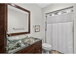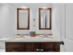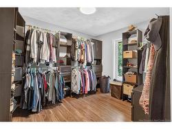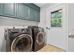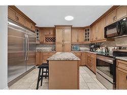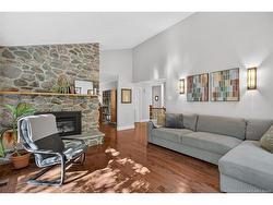 When Viewing This Property On Realtor.ca Please Click On The Multimedia or Virtual Tour Link For More Property Info. This stunning bungalow on a private 2.1-acre lot offers both seclusion and convenience, with oversized windows filling the home with natural light. You’re welcomed into a spacious entryway that opens to a dream kitchen with abundant cabinetry, a built-in commercial fridge, and a large eat-up island perfect for entertaining. Patio doors lead to a private deck surrounded by nature. The dining room features a striking stone accent wall separating it from the cozy living room, complete with a propane fireplace, hardwood floors, andbright windows. The primary suite boasts two walk-in closets and a spa-like ensuite with glass countertop vanity, heated floors, and sleek modern design, while two more bedrooms and another full bath with heated floors complete the main level. The lower level offers a family room, gym with brick wall and decorative fireplace, a fourth bedroom, huge storage, utility room with workbench, wood storage, and roughed-in half bath. Comfort is ensured by a whole-home heat pump. Outdoors, enjoy a detached double garage with two automated doors, a heated office or hobby space, landscaped grounds, two sheds, and a large circular driveway, all surrounded by nature.