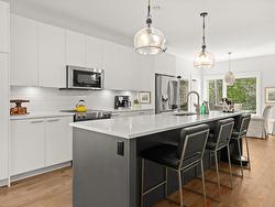 Welcome to 28B Rockhaven Drive in Halifax! This modern townhome is nestled on a quiet, tree-lined street in the established community of Rockingham. Just minutes from the Bedford Highway, Dunbrack, the 102/103 and the bridges, this location offers both privacy and convenience with easy access to shops, schools, and amenities. This home provides a high-end, luxurious feel at every turn, offering three full levels of above-ground living space. The open-concept main floor is bright and modern, featuring both a living and dining area, stylish kitchen with quartz countertops, and access to a private sunny deck. Upstairs, you’ll find a generous primary suite with walk-in closet and ensuite, plus two additional bedrooms, full bath, and convenient laundry, with glimpses of the Bedford Basin from this level. The lower level (above grade) provides a spacious family room, another full bath, and a walk-out to the backyard and patio plus easy access to the attached garage. Quality features include a ducted heat pump system, Kohler windows, hardwood and ceramic tile flooring, an attached garage with two-car concrete parking pad, and stonework on the front exterior, with privacy screening on decks and staggered entrances enhancing the standalone feel. To top it off, the Lux warranty provides peace of mind, while thoughtful upgrades set this home apart: heaters in upstairs bathrooms, new glass shower door in the primary ensuite, custom window coverings throughout, designer lighting in dressing room and kitchen island, pot lights with dimmers in the main and flex spaces, a wine refrigerator, wallpaper and propane fireplace with mantle in the lower level flex space, garage storage units, landscaped yard, front security camera system, and backyard sensor light. The definition of move-in ready, 28B Rockhaven combines the comfort of modern construction with style.