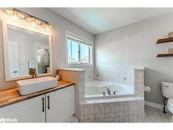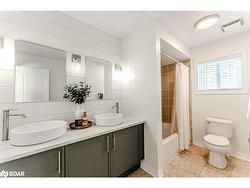 POOL PARTIES, PINTEREST VIBES & EVERYTHING IN BETWEEN! This Pinterest-worthy, staycation-ready home brings resort vibes, curated style and magazine-worthy finishes to one of Barrie’s most popular south-end neighbourhoods. Set on a quiet, low-traffic street in family-friendly Innishore, you’re minutes from top-rated schools, trails, beaches, Friday Harbour, golf and everyday essentials. Curb appeal is on point with a stately red brick exterior, black garage doors, loft peaks and a welcoming covered porch. Out back, the fenced yard feels like your own private resort, complete with a heated inground pool, an interlock patio, an Arctic Spa 6-seater hot tub and a hardtop gazebo with privacy walls. Inside, over 2,400 square feet of finished space unfolds with curated, high-impact style from top to bottom. The crisp white kitchen is a showstopper with updated stainless steel appliances, subway tile backsplash, shiplap ceiling, deep sink, modern hardware and sleek countertops. Every corner of the main level exudes designer flair, including wide-plank floors, pot lights, board-and-batten accents, multiple shiplap feature walls, and a sliding barn door that adds a touch of personality. Upstairs, three generous bedrooms include a private primary retreat with a slatted wood feature wall, walk-in closet, wardrobe system and a 4-piece ensuite. The fully finished lower level adds even more to love with a built-in bar, fourth bedroom, another full bathroom and flexible space to relax or host. You’ll also love the main floor laundry with garage access, four bathrooms total, double garage with inside entry, central air, central vac, water softener and garage door opener. Designed for real life yet finished like a dream - this #HomeToStay is unforgettable!