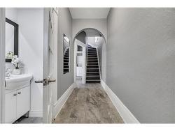 Stunning Home with a fully legal accessory dwelling unit, approved by the City of Brantford. Located in Brantford's Victorian District, this is the perfect fit for first-time homebuyers looking for a reliable mortgage helper. This charming duplex offers a spacious 3 bed, 1.5 bath main residence and a legal, self contained 1 bed, 1 bath rear unit. The main residence features 10' ceilings, Porcelain tiles, new powder room (Oct 2025), main floor laundry, kitchen, living and dining . Upstairs offers 3 spacious bedrooms, and a 4-pc bath. The rear unit is a bright, oversized flat with separate laundry, covered patio and gardens for perfect relaxation. Enjoy a right-of-way driveway, detached garage, and a fully fenced yard . This home is designed for flexible living and financial freedom. The entire building boasts a brand new roof (September 2025), ensuring lower maintenance living and peace of mind: professionally done exterior painting, resulting in a fresh and modern finish. Don't miss this smart, move-in ready investment in your future.