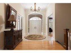 Discover this exceptional custom executive bungalow with southern exposure positioned at the end of a peaceful cul-de-sac on a 1/3 acre lot,where luxury meets tranquility backing onto a wooded ravine connecting the Bruce Trail and all its beauty.This stunning 3+1 bdrm,3.5 bath residence spans 6,327 sq ft of meticulously designed living space,perfectly situated in Burlington’s desirable Escarpment neighbourhood.Natural light cascades throughout the home,enhanced by impressive 10-12ft ceilings on the main level and over 9 ½-12ft ceilings on the lower level.Open concept Great Room features hardwood flooring and a cozy gas f/p flowing seamlessly into the gourmet kitchen.The kitchen showcases pristine cabinetry,a large island and breakfast area w/ convenient access to the outdoor balcony overlooking your backyard.The perfect places for casual entertaining.Elegant formal dining room accommodates larger gatherings,while a separate main-floor office provides a quiet workspace.The oversized primary bdrm offers a private retreat with gas f/p,spacious w/i closet,and updated 5 pc ensuite. 2 additional bedrooms, 4 pc bath,and powder room complete the main level along with the practical elements of a laundry room with direct garage access.The finished LL expands living options w/ rec room complete with pool table area,media room,and a gym area with direct access to the yard. Guest bedroom is located next to a 3-pc bath.The Utility room w/ 12ft ceiling provides ample storage,maximize functionality.Step outside to discover a private retreat w/ manicured gardens featuring an inground saltwater pool & extensive entertaining areas accessible through 2 separate walkouts from the LL.A double oversize garage provides space for a car storage lift system.This prime location offers convenient access to highways,shopping,walking trails,& golf, creating the perfect blend of suburban serenity and urban convenience.Freshly paint thru/out ensures move-in readiness.LUXURY CERTIFIED