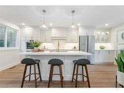 A must see! A raised bungalow featuring 3+1 beds with very rarely offered 3 FULL baths, including ensuite privileges for the spacious primary bedroom. With nearly 2,500 sq. ft. of finished living space, this home offers a unique blend of comfort, versatility, and opportunity. The bright, open-concept main floor is sun-filled through a large bay window and showcases a custom brand new kitchen with quartz counters & new appliances. The lower level’s walkout design makes it feel anything but a basement, complete with a separate entrance, 3-pc bath, laundry, and a bonus tucked-away second kitchen—ideal for an in-law suite or private living unit, if desired. Enjoy a raised deck with great privacy among mature trees, a metal roof, ample storage in the shed and garage loft, and a move-in-ready lifestyle. Just unpack and enjoy!
