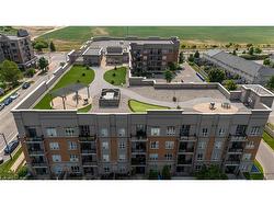 Experience true penthouse luxury at the Haven building in Burlington's coveted Orchard community! This Spectacular 1-bedroom plus den, 2-bathroom suite redefines condo living with 1,209 sq ft of sun-drenched space soaring 10-foot ceilings that must be seen to be appreciated. Originally a two-bedroom plan, this unit has been brilliantly redesigned to create a massive, open-concept living room perfect for entertaining or enjoying the airy, light-filled ambiance. The updated chef's kitchen is the heart of the home, featuring gleaming quartz countertops, a large island, and premium stainless steel appliances. Unwind in your private primary retreat with a large walk-in closet and a spa-like ensuite bath. The versatile den makes an ideal home office or guest space. Enjoy morning coffee on your private balcony and the incredible convenience of a storage locker located on the same floor. The Haven offers an unbeatable lifestyle. Head up to the spectacular rooftop terrace with BBQs, a putting green, and panoramic views of the escarpment. The building also includes a gym, a party room, and an energy-efficient geothermal heating and cooling system for low-cost, year-round comfort.