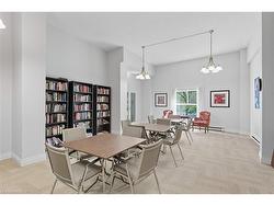 Welcome to The Highlands by the Park; 20 Berkley Road. Nestled atop a hill at the end of a quiet cul-de-sac in historic West Galt, this prestigious condominium offers tranquility, privacy, and sweeping views of nature and the city skyline. Overlooking a majestic woodlot, Victoria Park, and beyond, this building is one of Cambridge's hidden gems. This spacious 2,418 square foot, carpet-free unit offers a rare combination of size, layout, and natural light. With 3 generously sized bedrooms, 2 full bathrooms, and a thoughtfully designed floor plan, it’s ideal for those seeking a blend of comfort and functionality. Step into an impressive foyer with mirrored walls and a large closet before entering the bright eat-in kitchen, complete with ceramic tile, crisp white cabinetry, built-in range top, track lighting and a cozy breakfast nook that looks out over lush greenery. The kitchen opens into a formal dining room with laminate flooring and elegant wall sconces; perfect for entertaining. The adjacent oversized living room features a wood-burning fireplace (sold in as-is condition) and leads to a bright all-season solarium with floor-to-ceiling windows, perfect as a den, office, or creative space. Down the hallway, you’ll find three spacious bedrooms, including a large primary suite with two large windows, an expansive walk-in closet, and a 5-piece ensuite. A second 4-piece guest bath serves the remaining bedrooms. The in-suite laundry closet is conveniently tucked away off the main hallway. Building amenities include a rooftop terrace with panoramic views, ample seating, and barbecue, a party room with full kitchen and lounge area, meeting room, exercise room, and beautifully maintained common spaces. This unit includes one underground parking spot with a tandem storage locker. Don’t miss this rare opportunity to live in a peaceful, elevated community surrounded by nature, just minutes from the charm and culture of West Galt.