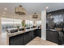 This stunning and spacious 1,295 sq.ft. interior + 80 sq. ft. private balcony, 2-bedroom, 2-bathroom condo- facing the Speed River and steps to downtown Guelph- offers an exceptional combination of luxury and convenience. The bright, open-concept layout is thoughtfully designed for accessibility and showcases luxury finishes including white oak hardwood flooring throughout, 9-foot ceilings, a remote controlled fireplace in the living room, and a designer kitchen flaunting a waterfall quartz island, quartz countertops, full-height backsplash, LED under-cabinet lighting, soft-close drawers, high-end stainless-steel appliances, and a spacious pantry. An abundance of natural light pours through the large windows- complete with roll-up shades for privacy- while the private balcony offers stunning, unobstructed views of the river. The primary suite boasts a generous walk-in closet and a spa-inspired 5-piece ensuite, complete with a freestanding soaker tub and an oversized glass shower. A second bedroom is thoughtfully positioned on the opposite side of the unit, and is conveniently located near a stylish 3-piece bathroom and the in-suite laundry. This condo also includes a secured underground parking space for your comfort and peace of mind. The well-maintained building offers incredible amenities including a gym, guest suite, golf simulator, billiards, a lounge with a library, a second lounge bar with terrace, an outdoor dining terrace and BBQ area, indoor visitor parking, secured bike rooms on all parking levels, and a welcoming community where neighbours truly look out for one another. Just steps away from restaurants, cafés, shops, Market Fresh, the Farmer's Market, the VIA Rail/ GO train and bus stations, and within easy access to riverside trails. This condo delivers the ultimate lifestyle in one of Guelph's most desirable locations.