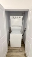 Welcome to this stunning 10th-floor unit in the highly sought-after Trend 3 community! Step into a bright and inviting 2-bedroom, condo. The open concept layout seamlessly connects the modern kitchen and living area, featuring brand-new stainless steel appliances, a stylish breakfast bar with quartz counter tops, and direct access to your private balcony w/exposure to two sides. A well-appointed 4-piece bathroom and the convenience of in-suite laundry complete this thoughtfully designed space. Enjoy a lifestyle of comfort and convenience with exceptional building amenities, including vibrant party rooms, a state of the art fitness center, scenic roof top patios, and secure bike storage. Located in the heart of Waterdown, this home provides effortless access to top-rated dining, shopping, schools, and picturesque parks. Included with the unit is 1 owned surface parking space and an owned locker for extra storage. Experience contemporary living at its finest in this exceptional condo