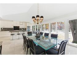 Welcome to Westdale’s Hidden Gem! Tucked away on a quiet court backing onto Royal Botanical Gardens property, this stunning brick bungalow offers the perfect blend of privacy, nature, and modern comfort. Set on a gorgeous pie-shaped lot surrounded by mature trees, it truly feels like a private retreat in the city. Inside, you’re greeted by a bright, open foyer leading to a show-stopping great room and kitchen with vaulted ceilings and wall-to-wall windows overlooking the lush backyard. The chef’s kitchen features sleek cabinetry, granite counters, a large island with seating for four, a wine fridge, and built-in double ovens, ideal for entertaining. The spacious primary suite is a true escape with a gas fireplace, hardwood floors, walk-in closet, and spa-like ensuite with jetted tub and double vanities. Two additional bedrooms and two 3-piece baths complete the main floor. The lower level offers incredible in-law potential with full-size windows (2’6” above grade), a separate side entrance, second kitchen, large family room with fireplace, and two possible bedrooms, perfect for multi-generational living or guest accommodations. Step outside to enjoy the peaceful setting, concrete patio, and sprawling yard bordered by the RBG’s greenery. Moments from McMaster University, Cootes Paradise, the shops and cafés of Westdale, and easy access to Highway 403. A rare opportunity in one of Hamilton’s most desirable pockets, come experience the beauty of Freeland Court!