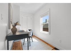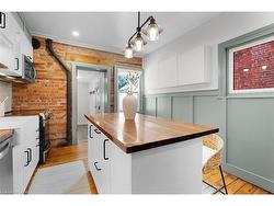 From the moment you step through the front door of 40 Emerald Street North, you’re greeted by timeless elegance and modern comfort in perfect harmony. The spacious foyer welcomes you with a full closet, solid wood Victorian doors adorned with vintage hardware, and recently refinished original pine floors that flow throughout the home. High ceilings crowned with ornate medallions, lofty baseboards, and exposed brick create a warm, historic backdrop. The kitchen is a showpiece. Bright white cabinetry, stainless steel appliances, polished wood island, farmer’s sink, herringbone backsplash, wainscoting, and a striking exposed brick wall blend beautifully with the home’s century-old soul. Spacious principal rooms and tall windows fill the main level with light. Convenient powder room finishes the main floor. Wood stairs lead you up to three bedrooms, each with original doors, trim, hardware, and floors, along with a modern, sparkling bath. Everywhere you look, the best of old-world craftsmanship and thoughtful updates unite in style. The fully finished basement offers incredible flexibility. A private in-law suite, teenage retreat, or guest space featuring a living area that can double as a bedroom, a sleek 3-piece bath, kitchenette, and direct laundry access. Step outside to a fully fenced backyard, perfect for relaxing or entertaining, and a rare detached garage for parking or storage. Updates incl. all wiring and plumbing (2019), 50 year shingles on main roof (2020), all new windows and limestone sills (2019), furnace (2019), water heater (2020). All of this in a walkable downtown location, just steps to shops, restaurants, parks, and transit. 40 Emerald Street North delivers heritage charm, modern updates, and unbeatable convenience. It’s a real gem in the heart of the city.