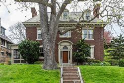 This charming Georgian style southwest home offers a rare opportunity to own an untouched piece of Hamilton historic architectural excellence. 45 Markland is defined by generous proportions and character, high craftsmanship and custom detail—hardwood floors, refined moldings, soaring ceilings, and beautifully preserved trim—the interiors exude both warmth and elegance. The well-planned layout features spacious principal rooms, a cozy den for quiet moments, a sunroom filled with natural light, and a screened porch perfect for summer afternoons. Four bright bedrooms, two with ensuite baths on the second floor, provide spacious living for families. A large attic with two bedrooms, full bath and unfinished loft with plentiful storage provides ready made potential for a studio, or even an in-law suite. Outside, the landscaped backyard, including raised flagstone patio, offers a private and tranquil retreat, ideal for entertaining or unwinding. At the end of a full driveway, a handsome brick two-car garage adds both practicality and character. Located at the base of the Niagara Escarpment, just minutes from downtown Hamilton’s restaurants, shops, parks, and transit, this home sits within one of the city’s most historic and sought-after neighbourhoods, Durand. Recent updates include a new high-efficiency furnace (2023). Designed by renown local architect Gordon Hutton of Hutton & Souter (designers of Christ the King Roman Catholic Basilica), 45 Markland is more than a residence—it is a beautifully preserved example of gracious family living.