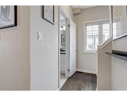 Welcome to 49-377 Glancaster Road, a premium end-unit where modern living meets comfort in this beautifully upgraded 2-bedroom, 1.5-bath townhome. Perfect for young professionals, small families, or downsizers ready to settle into a space that truly feels like home. Step inside to a bright, versatile entryway, an ideal spot for a home office, play area, or mudroom complete with a spacious closet and direct access to the garage. Head upstairs to the heart of the home: an open-concept living space with hardwood floors, recessed lighting, and large windows that fill the home with natural light. The upgraded kitchen features quartz countertops and premium KitchenAid appliances, seamlessly connected to the dining and living areas for easy entertaining. Slide open the doors to your private balcony and enjoy your morning coffee and evening sunsets! On the third level, you’ll find two generous bedrooms and a fully renovated main bath with a stunning walk-in glass shower and double vanity. Convenient bedroom-level laundry adds everyday ease, and the custom hybrid blackout blinds throughout the home offer privacy and comfort. With parking for two (garage & driveway), ample visitor parking, and a family-friendly community, this end-unit townhome has everything you need - all nestled in a quiet, welcoming complex close to Kopperfield Park, Meadowlands Power Centre, highway, trails, and more!