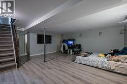 • Playroom with baseboards and dark wood-type flooring -
