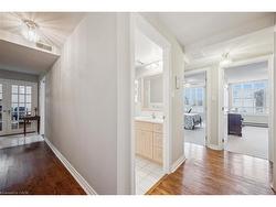 Welcome to Queens Heights one of the areas most desirable bespoke buildings. Carefree condo living at its finest. Large 1722 square ft 2 bedroom, 2 bathroom unit plus a den. A spacious entry foyer with plenty of closet space. Double French doors lead to the formal dining room, oak flooring, plenty of space for your table and hutch plus a wall to wall custom built-in. 0versized living room, good sized kitchen, handsome dark cabinetry, loads of counter and cupboard space, 2 pantries, storage galore. Bright breakfast room, great spot for your morning coffee, next to the main level den, sliding glass doors with California shutters lead to the balcony area. Two bedroom including a luxury sized primary , can easily accommodate a king sized bed, 4 piece ensuite. Second large bedroom, walk in closet, and an additional updated main level bath with walk in shower. In suite laundry room with additional storage space. Appliances included. Fantastic amenities, controlled entry, large lobby, guest suites, party room, billiards, library. fitness area, Fantastic rooftop terrace, BBQ area, underground parking with its very own carwash, Designated parking spot. Exceptionally maintained building, oak paneled hallways, immaculate, award winning summer gardens. Walk to shopping ,dining, Centre in the Square, library, downtown, farmers market, easy highway access. If you are looking for the ease of condo living in a friendly environment without sacrificing the space of a home then this meets all of the requirements. Begin your next chapter here.