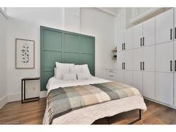 Welcome Home to the historic Kaufman Lofts in the heart of the Innovation District! This stunning 2-bedroom loft perfectly blends urban style with contemporary comfort. Featuring 14’ ceilings, luxury vinyl plank flooring, and custom barn doors, this open-concept space exudes character and sophistication. The modern kitchen showcases extended-height cabinetry, a large working island with seating, quartz countertops, and stainless steel appliances, ideal for both everyday living and entertaining. Enjoy an abundance of natural light through oversized windows and take advantage of custom built-in storage in each bedroom, plus the convenience of in-suite laundry. Residents of Kaufman Lofts enjoy access to premium amenities including a rooftop patio with community BBQ and dining area, a meeting/party room, bicycle storage, and visitor parking. Located just steps to the new Google Office, Sun Life and Manulife head offices, as well as restaurants, shops, and LRT transit, this loft offers the ultimate downtown lifestyle.