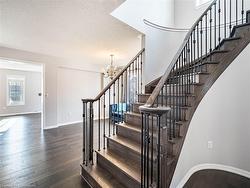 Bright, spacious, and ideally located 416 Gooch Crescent offers over 2,500 sq ft of family living in the desirable Scott community, directly across from the peaceful Gooch Woodlot. Nestled on a quiet street with no sidewalk, this home sits proudly on a premium corner lot with no front neighbors, offering excellent curb appeal and an abundance of natural light. Move-in ready and thoughtfully updated, this home checks all the boxes for modern family living. The layout is designed for everyday comfort and functionality, featuring hardwood floors, newly installed hardwood stairs (March 2025), and spacious principal rooms including formal living and dining areas, a large family room, and a main floor den ideal for working from home. The kitchen boasts quartz countertops, a functional island, newer stainless steel appliances (Aug 2024), and ample cabinetry. A bright breakfast area opens to a low-maintenance backyard with a gas line perfect for BBQs and entertaining. Upstairs are four generous bedrooms, including a spacious primary suite with walk-in closet and a 5-piece ensuite featuring a soaker tub and separate shower. A second-floor laundry room adds everyday convenience. The double car garage offers direct access to the home and includes an EV charging outlet, adding practical value for todays buyer. Located close to schools, parks, scenic trails, and all essential amenities, this is a well-maintained home offering the perfect blend of space, comfort, and location. Note: Select images include virtual staging to show potential layout options.