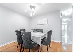 Welcome to this beautifully upgraded end-unit condo townhouse, ideally tucked away on a quiet court in the heart of Mississauga. Boasting over 2,000 square feet of thoughtfully designed living space, this impeccably maintained home features elegant hardwood flooring throughout both the main and upper levels.The open-concept main floor offers a seamless flow, perfect for everyday living and entertaining. Enjoy a spacious dining area, a chic 2-piece powder room, and a kitchen equipped with built-in appliances. The inviting living room is warmed by a cozy fireplace and overlooks a sun-drenched backyard facing a children's playground - a serene setting for families. Upstairs, the expansive primary suite offers his and hers custom closets and a luxurious 4-piece ensuite. Three additional generously sized bedrooms and a beautifully updated 4-piece bathroom complete the upper level. Custom closets throughout by Grinyer add both style and smart storage, while WiFi-controlled LED pot lights elevate the ambiance throughout the home.The finished basement has been recently renovated to include a modern bathroom, a functional laundry area, and plenty of storage space. Situated minutes from Square One, top-rated schools, major highways, parks, and dining- this home truly checks athe boxes. A must-see gem in a prime location!