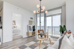 Perched high above the city on the 33rd floor in the highly sought-after Grand Park 2 condo, this beautiful 2-Bedroom + Den corner suite (with parking & locker) is ready for you to move in and enjoy. Freshly painted and upgraded with modern lighting, this immaculate unit is approximately 1063-sf with 9-ft ceilings and a smart split-bedroom layout where both bedrooms have walk-in-closets. The kitchen features S/S appliances and an island with a breakfast bar, while the living and dining area is wrapped in floor-to-ceiling windows so you are surrounded by skyline and sunlight all day. Step out to your balcony and enjoy beautiful, unobstructed northwest views of the sunsets and evening city lights. Fantastic amenities include: exercise room, indoor pool, guest suites, party and dining room, an outdoor terrace with BBQ, and much more. Located in an extremely convenient location! Right across the building, you are steps to transit, parks, cafes, restaurants, Shoppers, Winners, and T&T Supermarket. In 10-15 minutes, you can walk to YMCA, Hazel McCallion Library, Square One Mall, Cineplex, Whole Foods, Celebration Square, Living Arts Centre, and more. Plus, easy access to University of Toronto Mississauga, Sheridan College, GO Transit, and all the major highways. Whether you are buying your first place, upsizing, or just want a home that is comfortable and connected to everything, this home is the perfect fit.