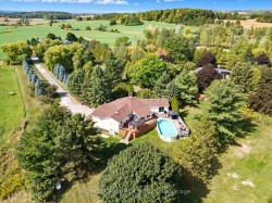 Welcome to your private paradise - an extraordinary 5-acre country retreat in rural New Tecumseth offering breathtaking panoramic views of open fields, mature trees, and the serenity of nature, all just minutes north of Highway 9. Enjoy the perfect blend of peaceful country living with convenient access to major routes just 10 minutes to Hwy 400, 7 minutes to Hwy 27, & only 30 minutes to both Toronto & Barrie. As you drive down the long, tree-lined driveway, you'll immediately feel the sense of peace & tranquility. The impressive frontage provides a grand entrance to your custom-built raised bungalow, surrounded by lush greenery and fresh air. Inside, the home boasts a massive, character-filled living room with soaring ceilings, hardwood floors, a large bay window, and a cozy wood stove that adds stunning ambiance. Walkout to the beautiful sunroom the perfect spot to soak in the natural surroundings. The open-concept kitchen features ample cabinetry and a center island, ideal for entertaining & family gatherings. The main level offers three spacious bedrooms, including two with 4-piece ensuites and private walkouts to decksone ideal for sunrise coffees, the other perfectly positioned for stunning sunset views. A versatile den adds even more flexibility to the layout. Downstairs, a separate entrance leads to a bright, above-grade basement apartment ideal for multi-generational living or rental income. It features large windows, a full kitchen, and plenty of living space. The deep, two-car garage with direct interior access adds functionality & easy access to vehicles away from the elements. The entire home has been professionally cleaned, offering a fresh, move-in-ready environment for its next owners. Step outside to your expansive entertainers deck with direct access to a sizeable above-ground pool perfect for summer BBQs under the stars. Surrounded by wide-open skies and natural beauty, this outdoor space invites you to unwind, host, and enjoy life in the country.