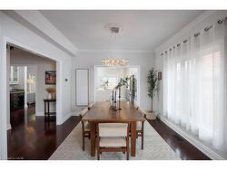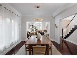 Experience the pinnacle of refined living in one of West Oak Trails most sought-after enclaves of executive homes blending upscale comfort with the tranquillity of nature. Embraced by the lush woodlands of the 16 Mile Creek ravine & within walking distance to the Glen Abbey Golf Club, highly-ranked schools, neighbourhood parks & just minutes from the Oakville Hospital, shopping, restaurants & highways, making the perfect balance of serenity & convenience. Curb appeal abounds with mature, professional landscaping, and an expansive interlocking stone driveway leading to a rarely offered 3-car garage with inside entry. The sun-soaked backyard, perfect for outdoor entertaining, features a brand-new stone patio (2024) & provides a serene retreat. Step inside this beautifully updated 4+2 bedroom, 4.5-bathroom home, where timeless elegance meets modern design. Highlights include hardwood flooring, 9’ main floor ceilings, & a stunning Scarlet O’Hara staircase that sets the tone for the entire home. The formal living room, with its soaring cathedral ceiling, flows effortlessly into a sophisticated dining area with classic crown mouldings—ideal for hosting elegant dinner parties. The stunning renovated kitchen (2022) boasts sleek modern cabinetry, quartz countertops, premium stainless steel appliances, & a walkout to the private patio. The spacious family room offers a cozy haven to relax, while the dedicated home office makes working remotely a breeze. Upstairs, the luxurious primary suite is a private sanctuary featuring a spa-inspired 5-piece ensuite complete with a freestanding soaker tub & a frameless glass shower. The professionally finished basement adds incredible versatility, featuring a generous recreation room with a gas fireplace, a vast open-concept area ideal for configuring to suit your lifestyle, a fifth bedroom with access to a 3-piece bath, & a home gym or potential sixth bedroom.