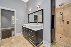 Premium Woodlands Pickering neighbourhood. Minutes to 401/Toronto border/Rouge Valley Park/407, schools, and shopping. Fantastic, larger, unique, custom-built stone and brick bungalow, rebuilt in 2004, approximately 2976 sf (iguide), nestled on a 120' x 200' premium lot. Ample parking for approximately 10 cars in the courtyard driveway. Oversized triple garage (double width & one tandem). This oversized bungalow, rebuilt on the existing foundation in 2004, offers a unique open-concept main floor, perfect for a large family to entertain guests. The kitchen features granite countertops, a large island, a spacious dining/great room area with a gas fireplace, oodles of pantry space, stainless steel appliances, multiple skylights, and wall-to-wall windows overlooking the oversized backyard. Step down to the spacious family room, featuring a stone gas fireplace, hardwood floors, and California shutters for added privacy. The Primary Bedroom is a unique space featuring a 5-piece en-suite bath, a staircase that accesses the private office/den in the basement, and a walk-in custom dressing room with ample built-in storage. The basement offers large above-grade windows in the finished areas, allowing ample light to flow in. Connecting to the Primary bedroom is a separate room offering ample space for a second walk-in closet, use as a nursery, or another office space - your choice. There are two additional generously sized bedrooms on the main floor, one of which features a 5-piece semi-ensuite. The basement offers access from the front entry hall to the recreation room, a large additional bedroom, and three pc bath. Walkout from the kitchen to the spacious composite deck with steps down to the hot tub. Sprinklers are located in the front and back yards, on timers. Also included is a garden shed in the yard. New heat pump/air conditioner installed in January 2024, plus auxiliary gas furnace. There is potential to sever into two building lots 60' x 200' each.