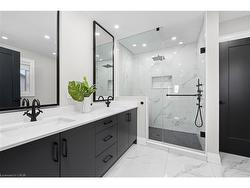 ELEVATE YOUR LIFESTYLE WITH MODERN LUXURY LIVING From the moment you walk in, this modern two-storey home (built in 2022) sets a tone of comfort and sophistication. The main level glows with layered lighting that makes every space warm and welcoming—perfect for family gatherings or relaxed evenings. Large-format tile adds a sleek, high-end feel while standing up beautifully to everyday life. The open-concept design encourages connection—whether you’re preparing dinner in the chef-inspired kitchen with custom Del Priore cabinetry, stone counters, and an oversized island, or relaxing in the living room with built-in cabinetry that blends function with style. From here, step through the dining area into your private backyard—complete with a concrete patio ideal for barbecues and summer nights, plus a shed that keeps outdoor gear neatly tucked away. Upstairs, wide oak stairs lead to a level designed for rest. Engineered hardwood flooring adds both warm style and durability, while each oversized bedroom includes abundant closet space—so mornings start calmly and organization comes naturally. The primary suite is more than a bedroom—it’s a retreat, with a spa-inspired ensuite and thoughtful finishes that transform daily routines into moments of luxury. Even outdoors, life is effortless thanks to the concrete driveway, walkways and patio, combining curb appeal with low-maintenance ease.Living in the North End gives the best of both worlds: a safe, family-friendly community with quick access to city amenities. The community has top-rated schools, while beautiful lakeside parks invite you to explore trails, waterfront sunsets, and weekend picnics. Shopping, dining, and transit are minutes away, making your lifestyle convenient and balanced. This isn’t just a place to live—it’s a home that adapts to your pace, enriches your routines, and connects you to a vibrant community. Step into the North End lifestyle and make it yours.