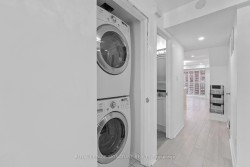 Tastefully Upgraded Tranquil Two Bed + Den Townhome With A Terrace & Juliette Balcony! An Entertainer's Dream Suite Featuring Smooth White Oak Laminate & Premium Wood Shutters Throughout! An Open Concept L-O-N-G Living/Dining Space With A Sage Green Accent Wall, Juliette Balcony, Floating Shelves & A Built-In Media Unit. The Expansive Gourmet Kitchen Features A Navajo White Subway Tiled Breakfast Bar, Quartz Counters, Stainless Steel Full-Sized Appliances, Marble-Style Backsplash & Loads Of Upgraded Cabinetry. The Primary Suite Will Sweep You Off Your Feet With A Walk-In Closet, *Bonus* Linen Closet, Floor-To-Ceiling Windows, Silver Bullet Grey Accent Wall & Walk-Out To The Private Terrace. The Second Bedroom Makes The Perfect Gym, Yoga Studio, Home Office, Little Kid's Room Or Nursery With A Large Window, Open-Faced Closet & Silver Bullet Grey Accent Wall. The Open Concept Den Features A Zen Green Geometric Wooden Feature Wall & Makes The Ideal Playroom, Home Office or Reading Nook. Relax & Unwind In The 4-Piece Bath With A Sage Green Accent Wall, 2-In-1 Subway Tiled Shower/Tub, Mirrored Medicine Cabinet, Under-Sink Storage & Bonus Shelving. Super Convenient Ensuite Stackable Laundry! Slide The Juliette Balcony Open For Fresh Air Or Retreat To The Decked Private Terrace Off The Primary Suite - Enjoy A Warm Cup Of Coffee In The Morning Or Glass Of Bubbly In The Evening! Current Rent is discounted $100 at $2,500/Month for December 15th Move-in and earlier. After Dec 15th move-in, rent is $2,600/Month.